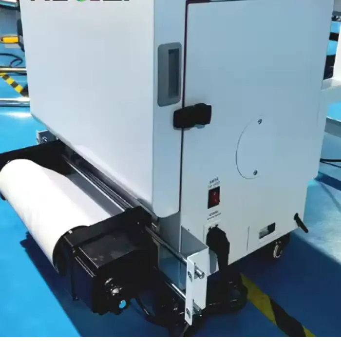 A DTF (Direct-to-Film) printer is a specialized inkjet printer designed to print designs onto PET transfer film, which can then be applied to textiles, like T-shirts, for custom apparel printing.