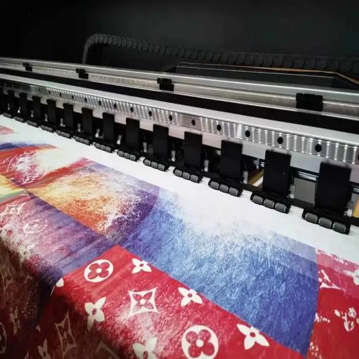 This printer is specifically designed for textiles, particularly for heat transfer applications using sublimation ink.