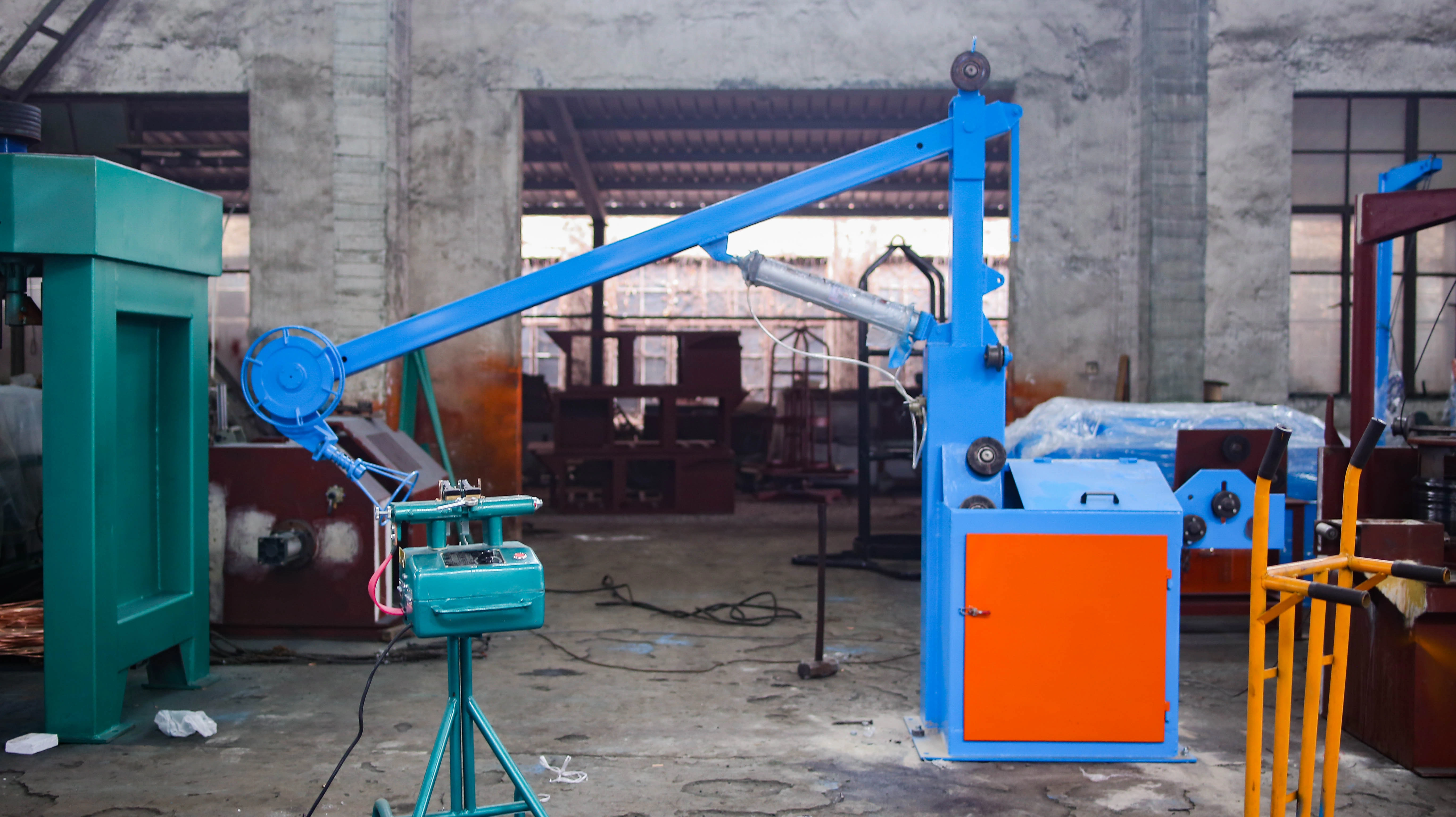 Additional equipment includes discharging machines, pointing machines, butt-welding machines, and spool reeling machines.