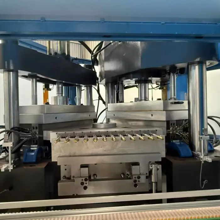 The machine utilizes components from reputable brands such as ATOS for high pressure valves, B&R for PLC, and FESTO for rotary cylinders.