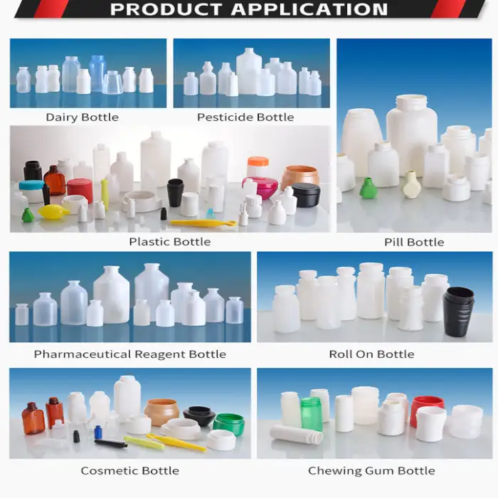 The machine can create plastic bottles with volumes ranging from 5 to 1500 mL.
