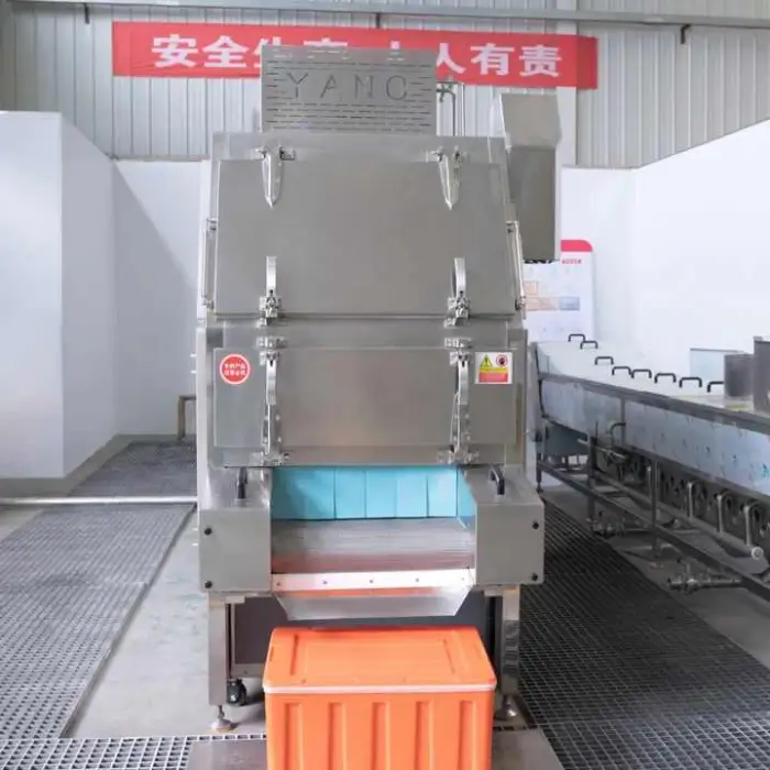 The compact dimensions of the machine allow for efficient use of space in industrial kitchens and processing plants.