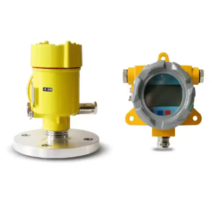 This radar level sensor is suitable for measuring both liquid and solid levels in various industrial applications.