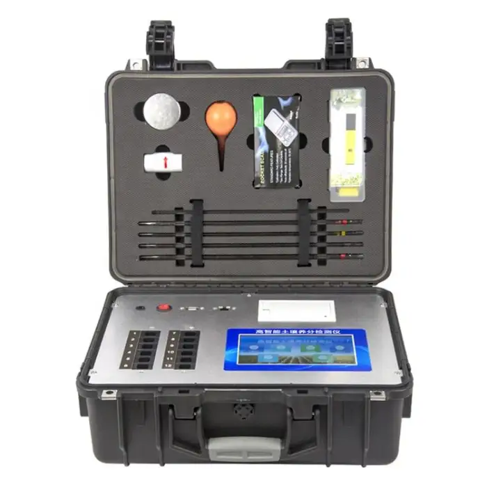 The Highly Intelligent Soil Environment Test Analysis Evaluation System can measure a variety of essential soil nutrients, including nitrogen, phosphorus, potassium, and others through its six detection channels.
