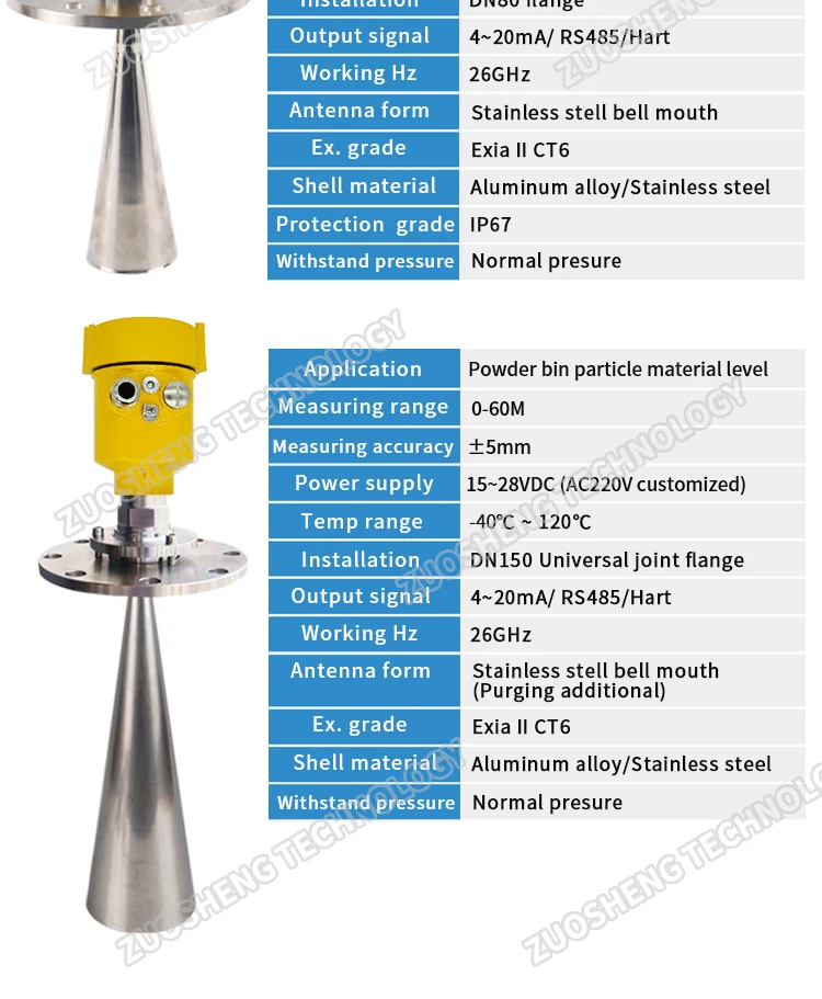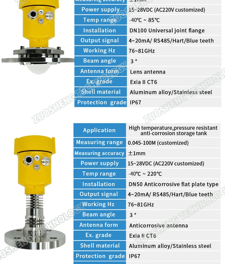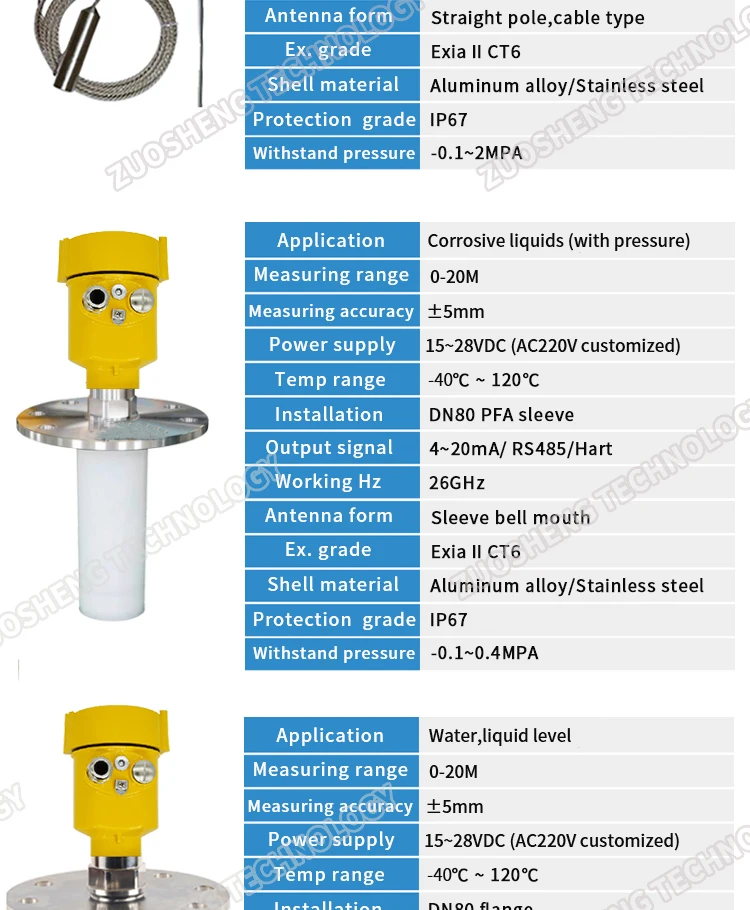 The sensor can operate with a power supply of 15-28VDC or AC220V, providing flexibility for various setups.