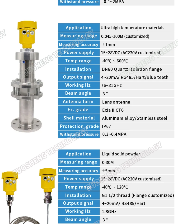 This sensor is ideal for river level monitoring, reservoir management, industrial liquid and solid-level measurement, and water treatment facilities.