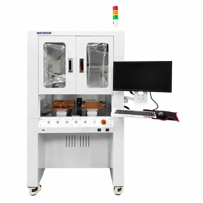 The machine features a visual soldering professional motion control system integrated with a PC computer for user-friendly operation.