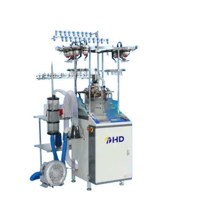 The machine is equipped with 160 to 360 needles, allowing for efficient cap production.