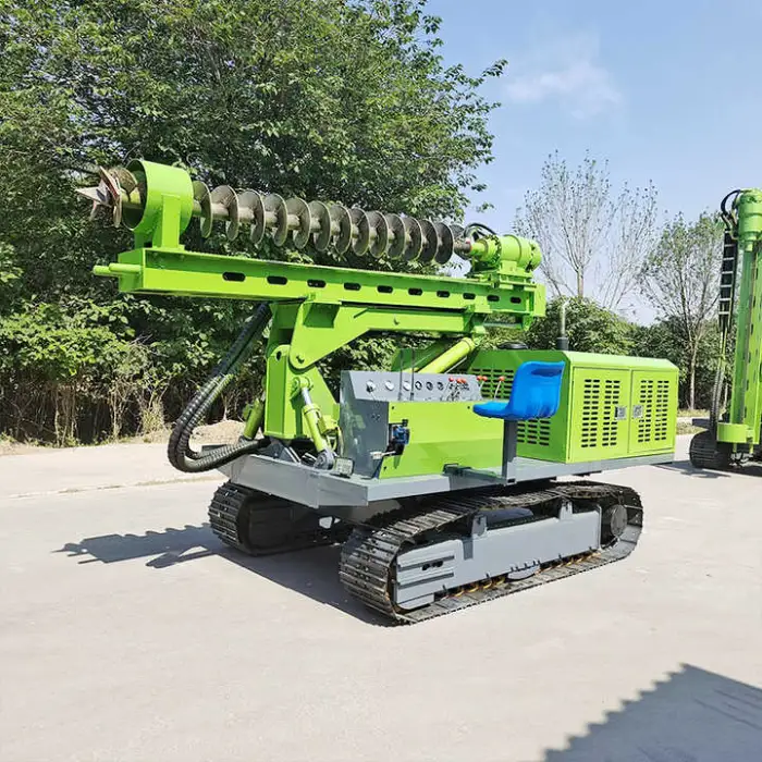 It is a hydraulic crawler-mounted machine designed for fast and powerful pile driving, drilling and screwing tasks. Typical applications include foundation construction, installation of solar panel supports, retaining walls, fences/poles and other civil engineering projects.