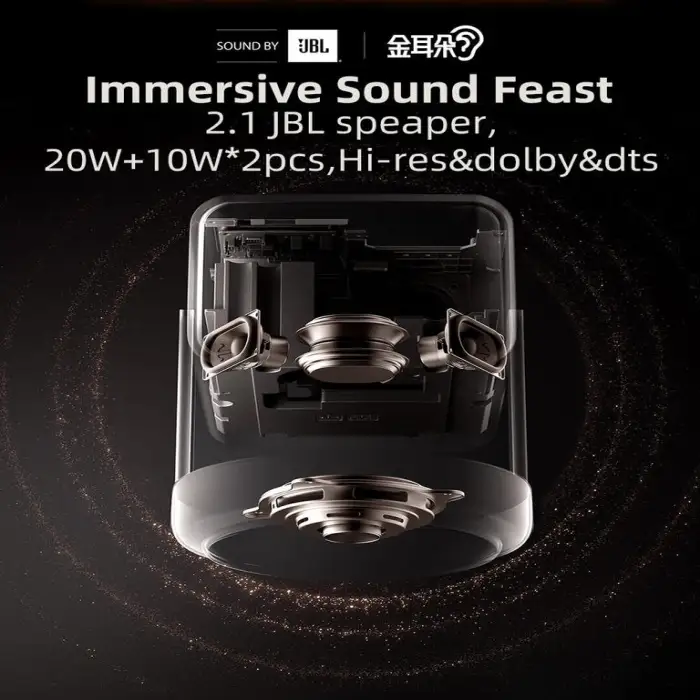 The projector features built-in JBL speakers, providing great sound quality for an enhanced viewing experience.