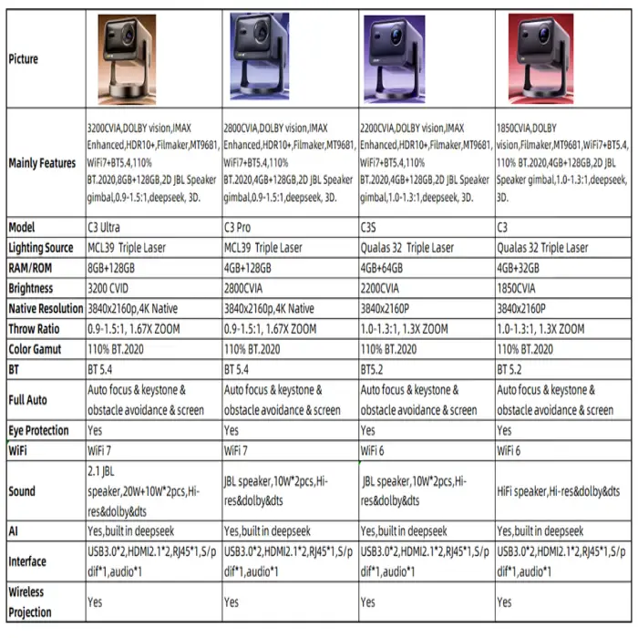 The projector boasts a brightness of 3200 CVIA ANSI lumens, which is equivalent to over 5000 lumens.