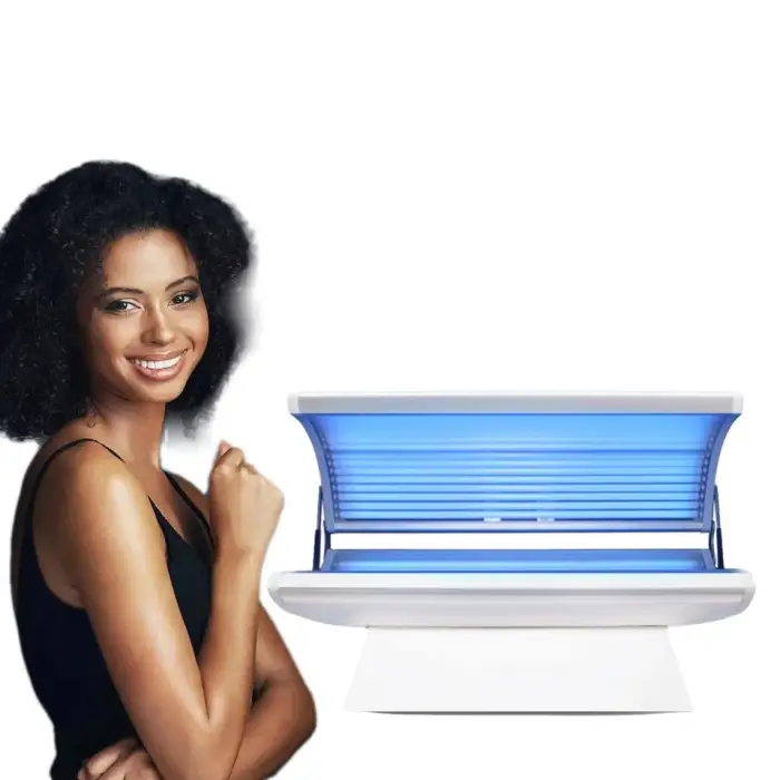 The unit uses UV blue light tanning lamps. Lamp type and rated lifespan are provided in the technical documentation—contact the supplier for exact lamp specifications (wattage, lamp model) and recommended replacement intervals based on hours of operation.