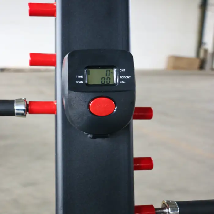 The climbing machine is constructed from sturdy steel, ensuring durability and longevity.