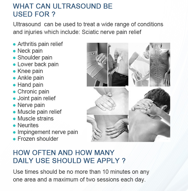 The ultrasound therapy can aid in muscle relaxation and pain relief for various musculoskeletal conditions.