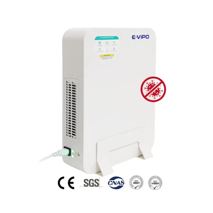 The Hospital UVC Air Sterilizer uses UVC light technology to kill 99.99% of bacteria and viruses in the air, providing effective air disinfection.