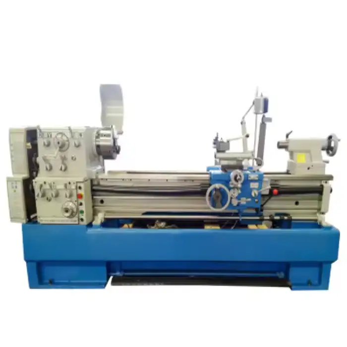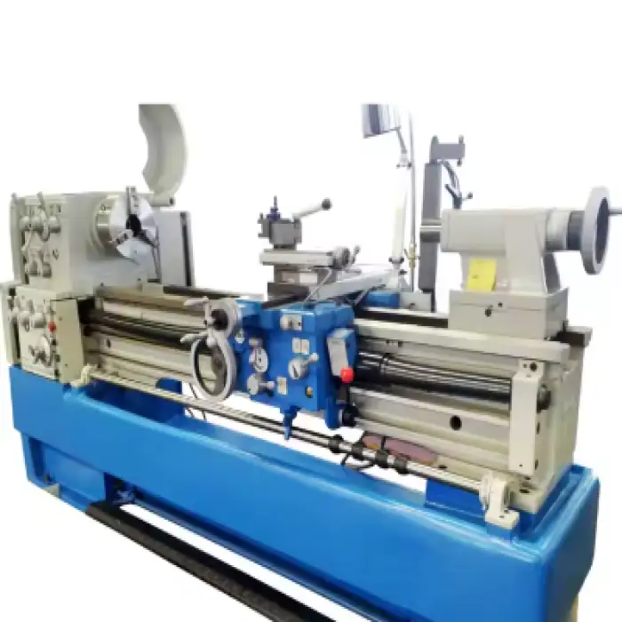The lathe features manual operation, allowing users full control over their machining tasks.