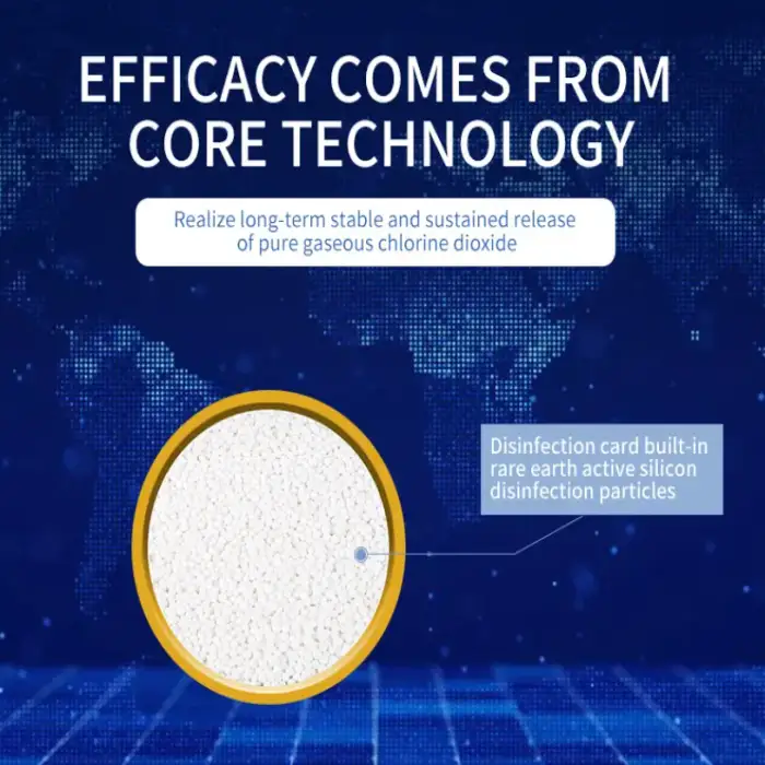 The Minter Air Cleaner utilizes chlorine dioxide air disinfection particles to purify the air, effectively eliminating harmful microorganisms and ensuring a safe atmosphere.