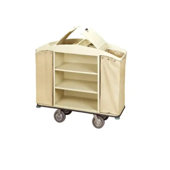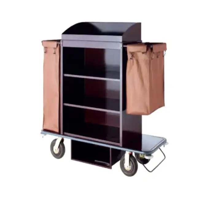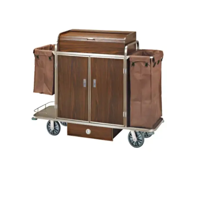 The Housekeeping Trolley Cart is constructed from high-quality 304# stainless steel, which is resistant to corrosion and designed for durability.
