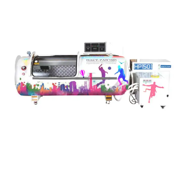 The HP1501 Hyperbaric Chamber is designed for personal health and wellness treatments, sports recovery, beauty treatments for skin rejuvenation, and support for various medical conditions through improved oxygenation.