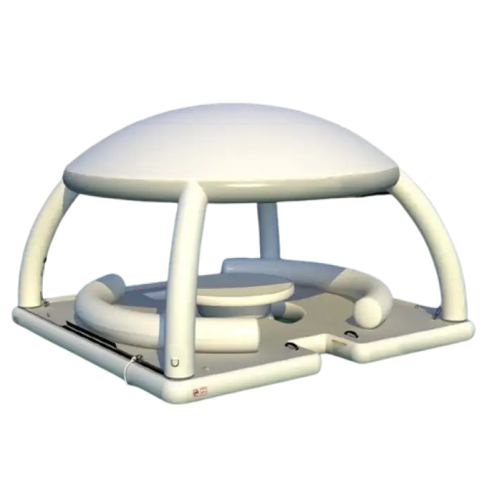 It is an inflatable water platform/sofa bar dock designed for adults and kids for recreation at pools, resorts, shopping malls and backyard gatherings. It provides a spacious, durable inflatable surface for lounging and water play.