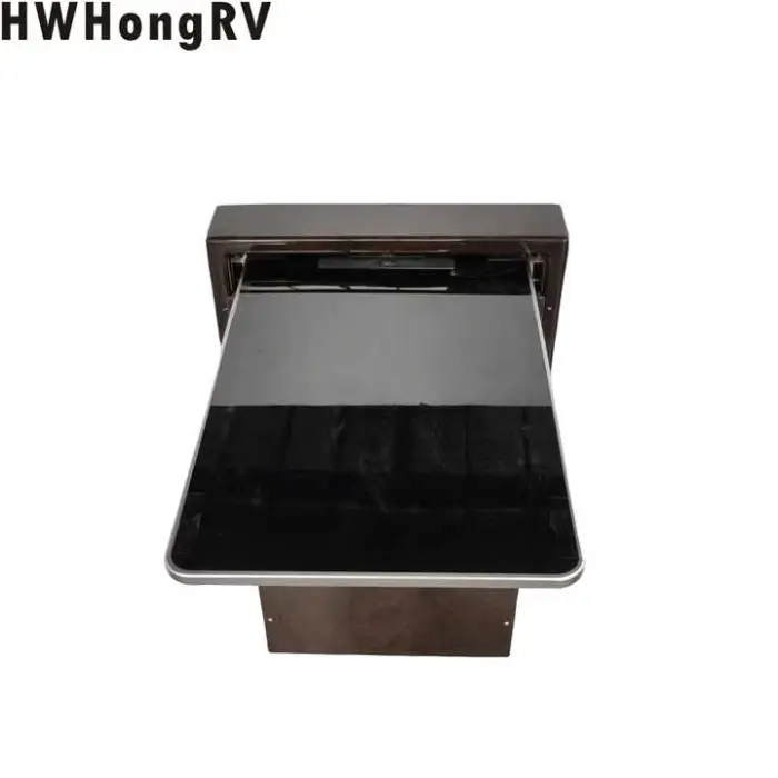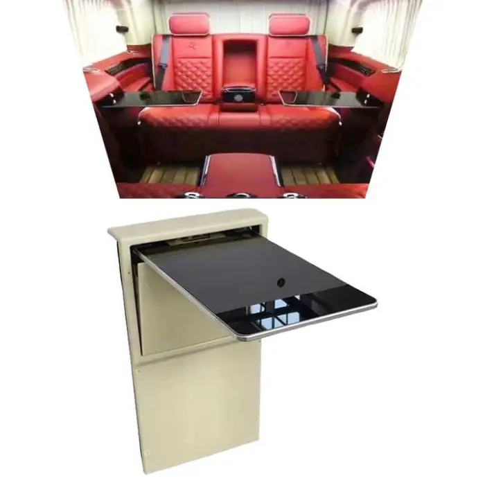 The HWHongRV MPV Hidden Multi Functional Power Fold-Away Table is designed for use in various vehicles, including caravans, camper vans, motorhomes, luxury buses, and VIP cars.