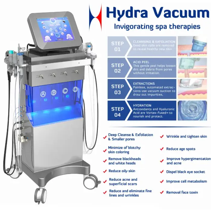 This machine can address a variety of skin concerns, including enlarged pores, fine lines and wrinkles, uneven skin tone, brown spots, oily congested skin, and advanced signs of aging.