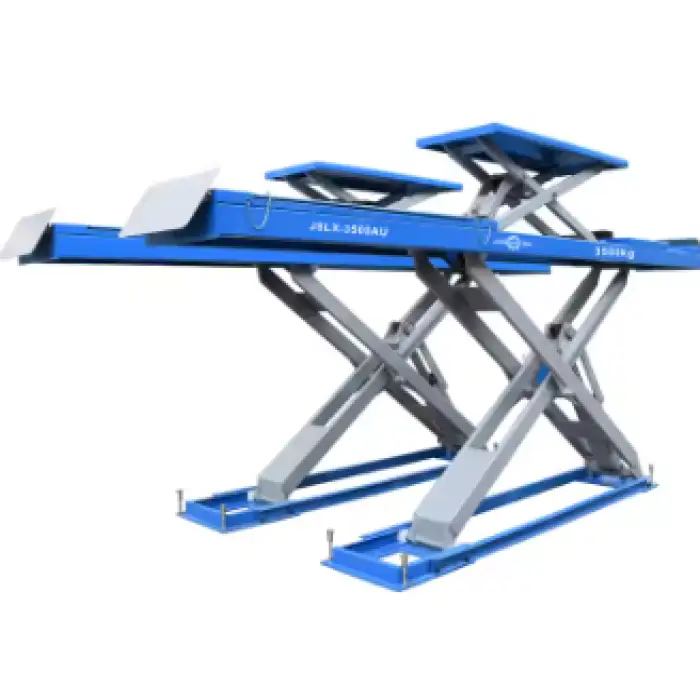 The Hydraulic Car Scissor Lift has a lifting capacity of 7,700 lbs (3,500 kg).