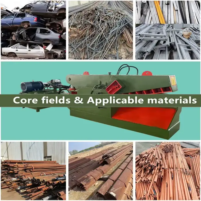 The machine is ideal for scrap metal recycling facilities, processing scrap aluminum and copper, cutting waste steel pipes in construction, and reducing scrap in metalworking shops.