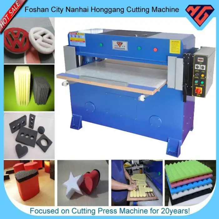 The machine is designed to handle a variety of materials, including plastic sheets, foam sheets, leather, and sponge.