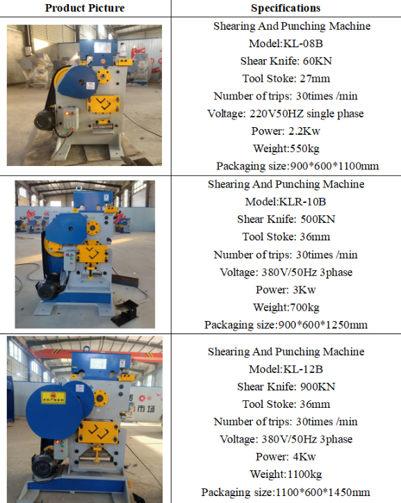 The KL-10B can cut and punch various materials, including mild steel, stainless steel, and aluminum.
