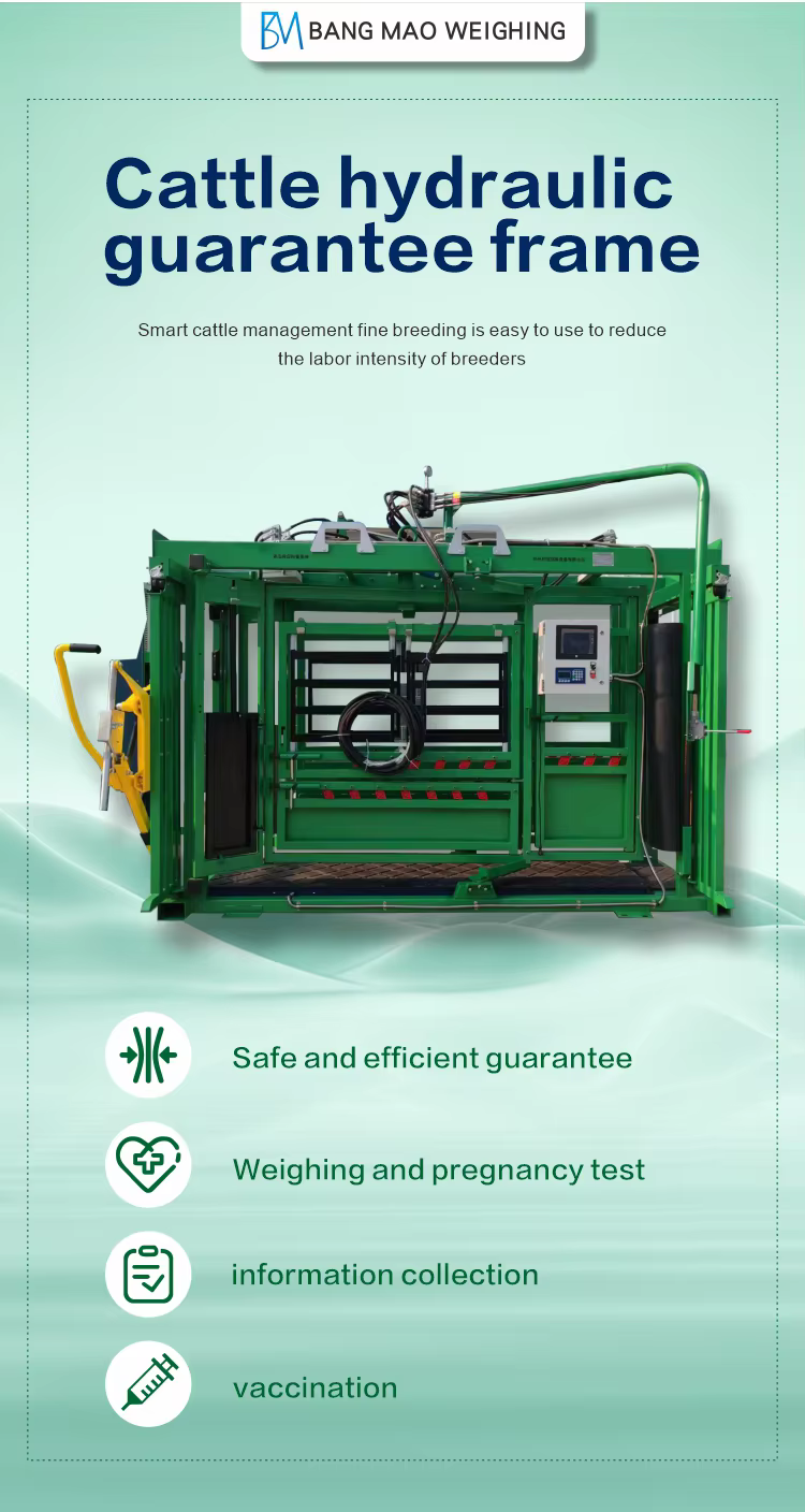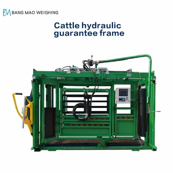 The design of the hydraulic frame enhances safety by providing a secure and stable environment for handling cattle, reducing the risk of injury to both the animals and the handlers.