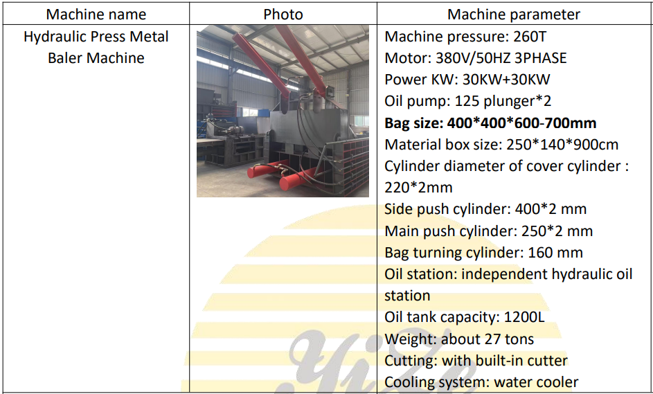 The Hydraulic Press Metal Baler Machine is specifically designed for metal materials. Using it for non-metal materials may damage the machine and void the warranty.