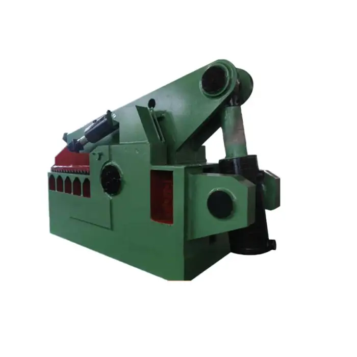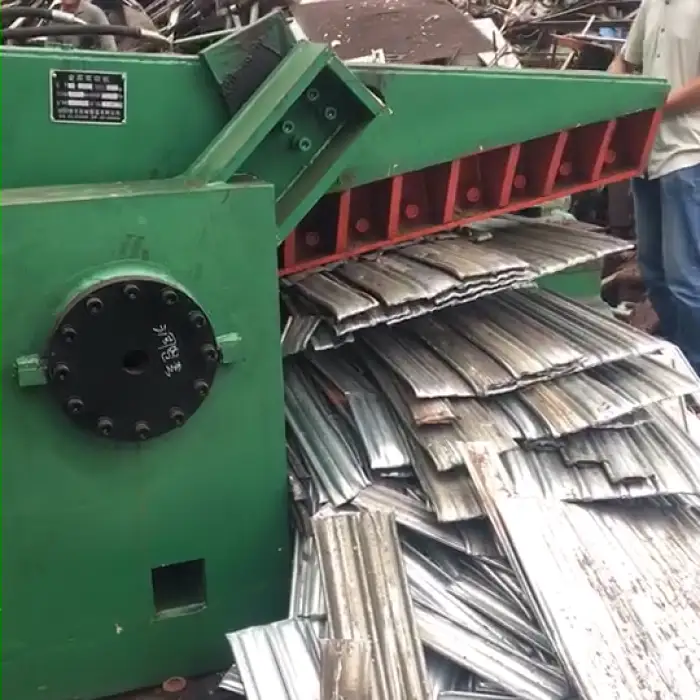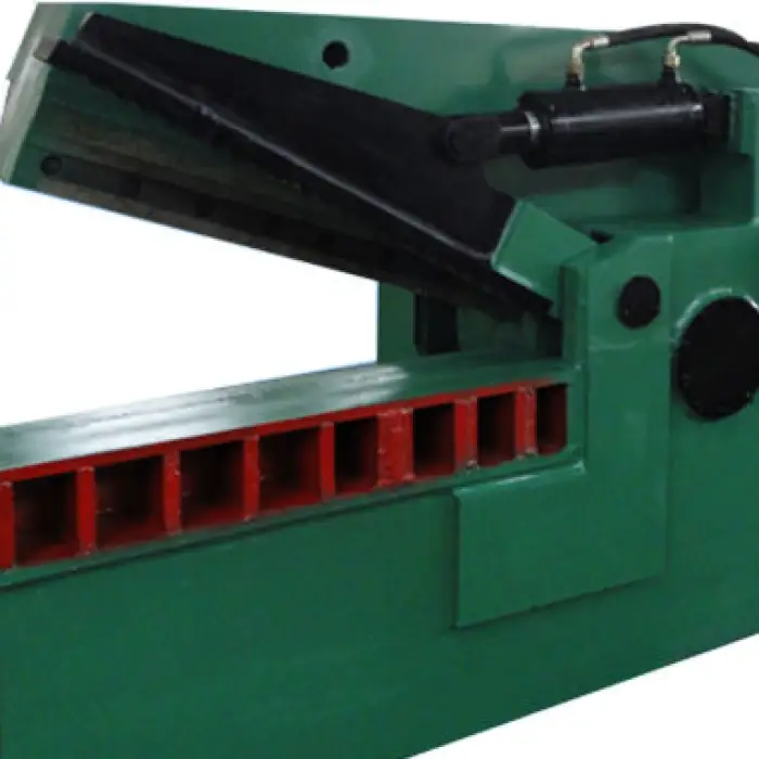 The machine is designed to cut through various metals, including steel, aluminum, and copper, making it suitable for a wide range of scrap metal recycling applications.
