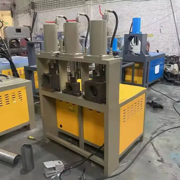The Hydraulic Square Pipe Round Tube Punching Machine operates using a hydraulic power source.