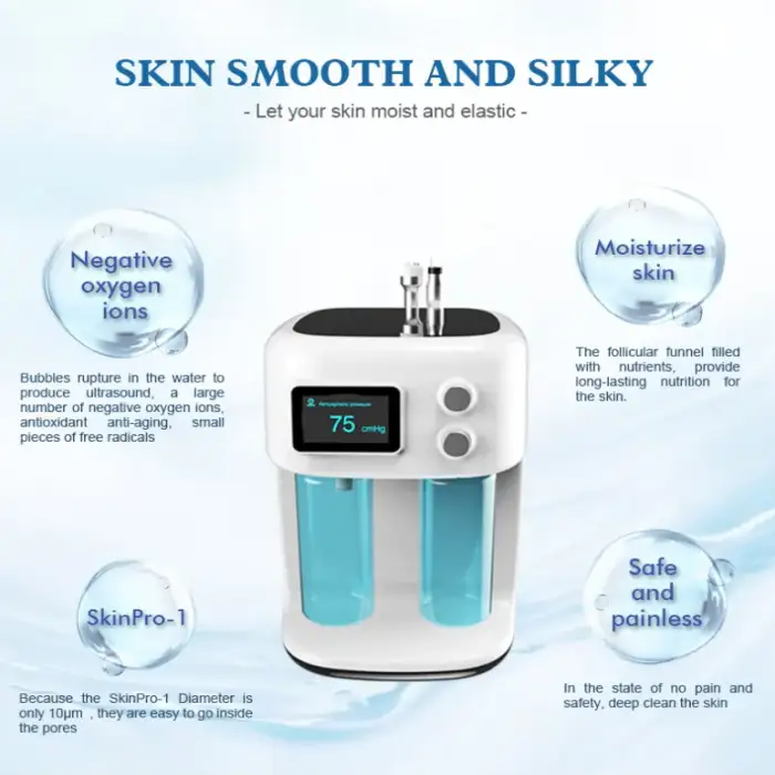 The Hydrodermabrasion Aqua Peel Facial Machine is designed for advanced skin treatments, providing effective skin rejuvenation and care through multiple modalities including liquid dermabrasion and RF skin tightening.