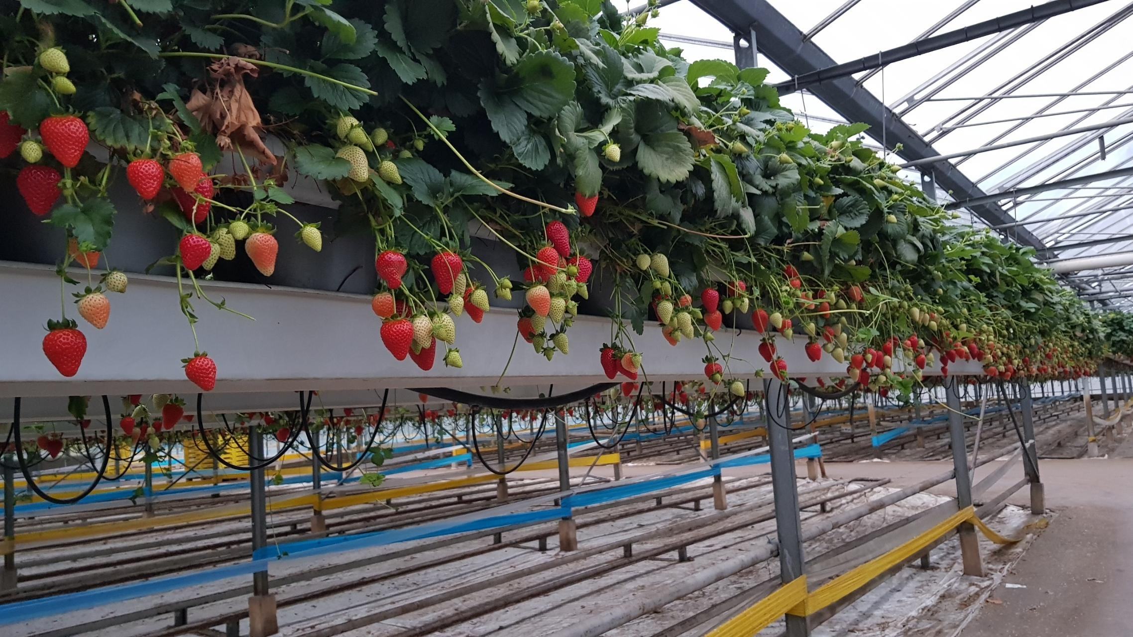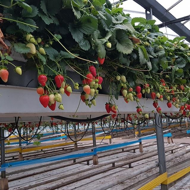 The Hydroponics Strawberry Gutter Greenhouse Growing System is a soil-less growing system designed for cultivating strawberries, tomatoes, and other fruits and vegetables using food-grade PVC material.