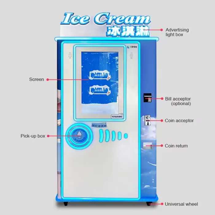 The vending machine is designed for automatic operation, allowing you to receive your ice cream in just seconds.