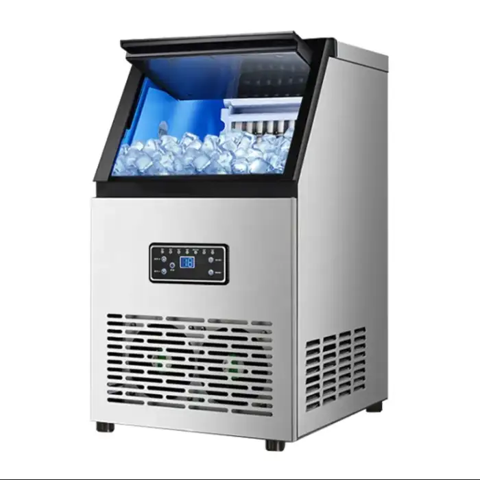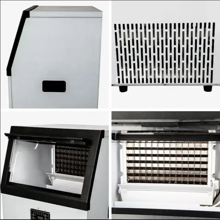 This ice maker produces cube-shaped ice, which is perfect for various beverages and food presentations.