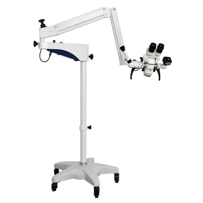 The microscope is equipped with high-quality LED lighting for bright visibility during procedures.