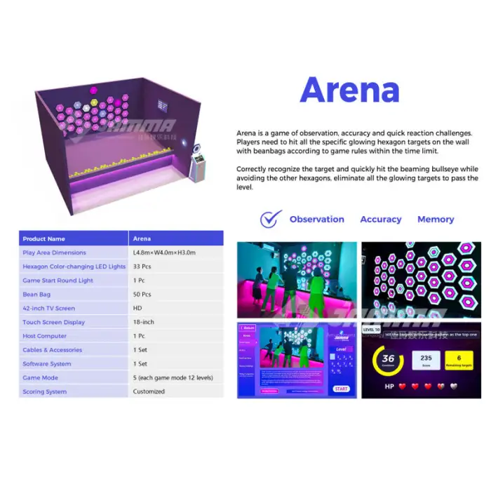 This game is ideal for indoor commercial amusement parks, sports training facilities, community recreation centers, and school gymnasiums.