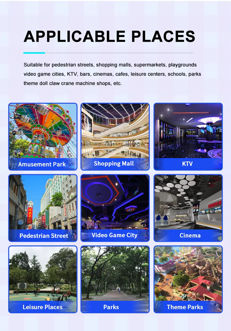 The claw machine is perfect for indoor use in places like amusement parks, shopping malls, game rooms, and at birthday parties.
