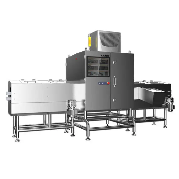 The X-ray inspection process detects foreign objects and defects within the packaged products, ensuring safety and quality.