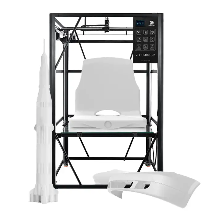 This 3D printer supports a variety of filament types including ABS, PLA, PC, PETG, TPU, Nylon, and Carbon Fiber.