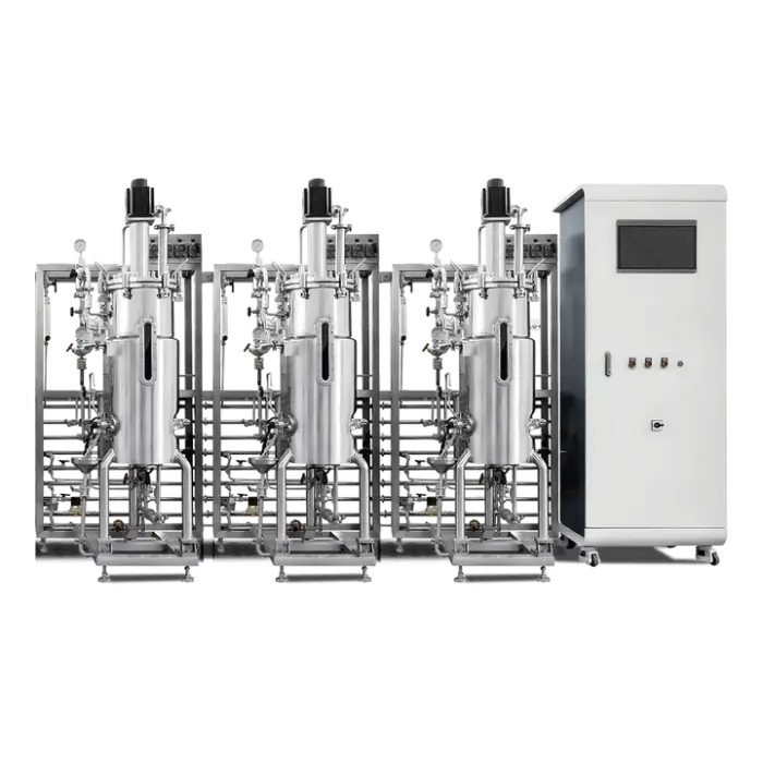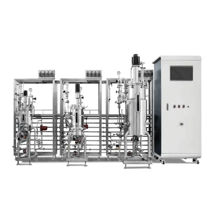 The bioreactor features advanced temperature control, allowing for precise adjustments within a range of 5 to 65℃ with an accuracy of ±0.2℃.