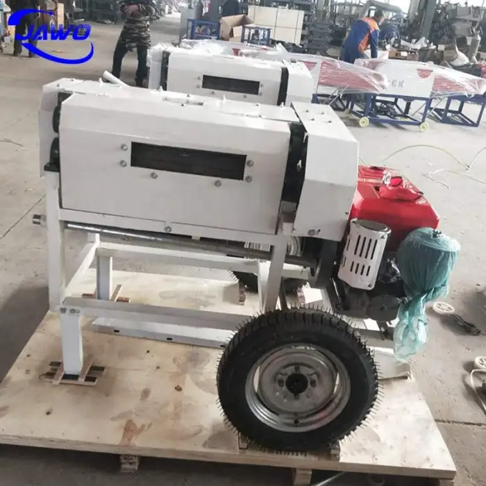 The machine can process various materials including jute, ramie, hemp, and linen.