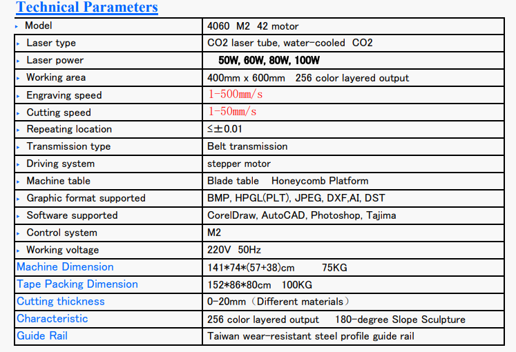 The maximum engraving area for the CO2 laser engraving machine 4060 is 40 x 60 cm.