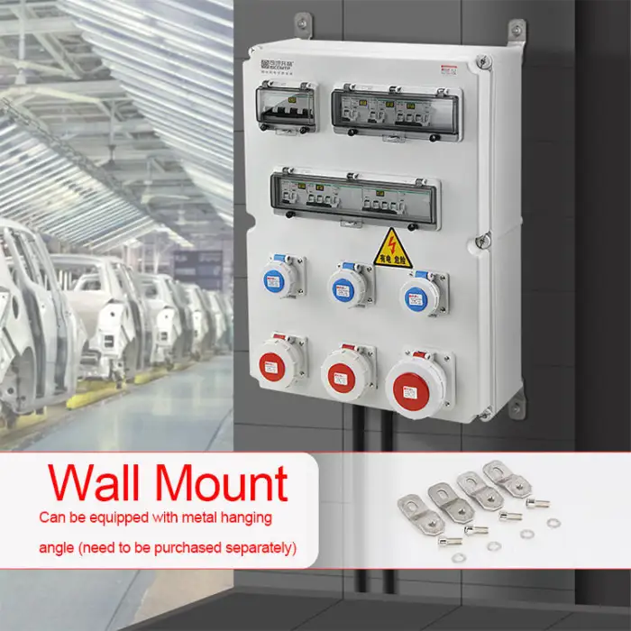 The power box features a wall-mounted design, allowing for easy installation on various surfaces.