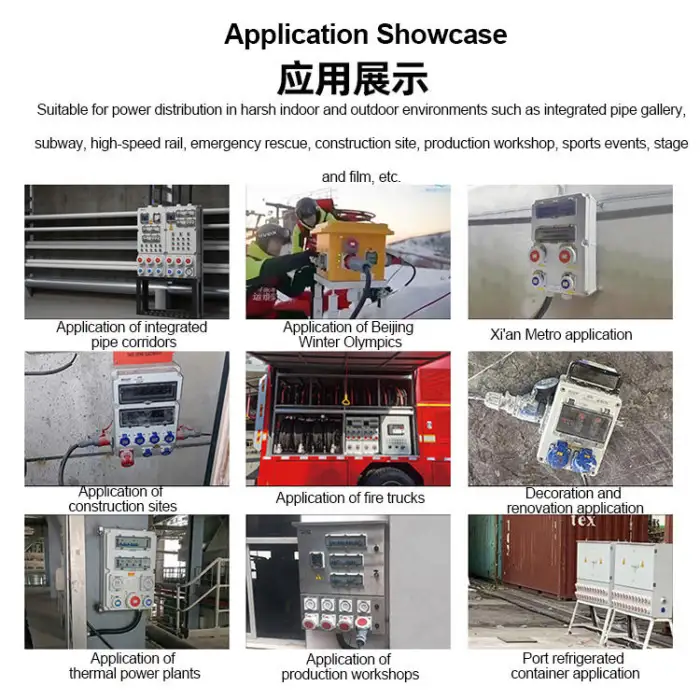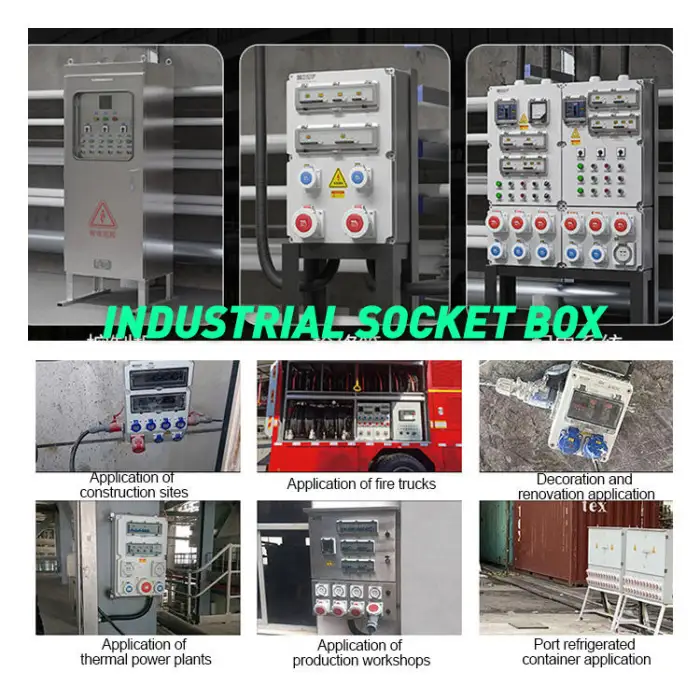 The power box can accommodate various electrical connections, making it suitable for heavy machinery, commercial buildings, and outdoor power supplies.