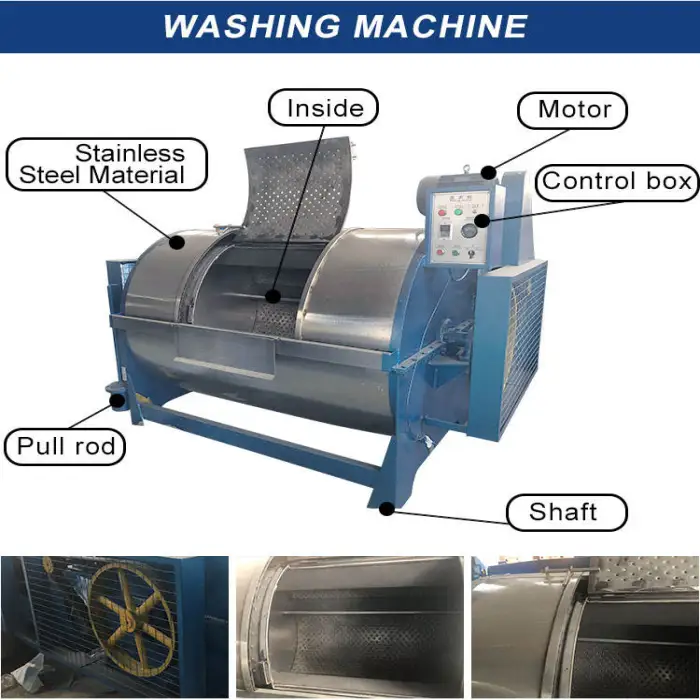 The wool washing machine is built with a durable and robust design, suitable for industrial use.