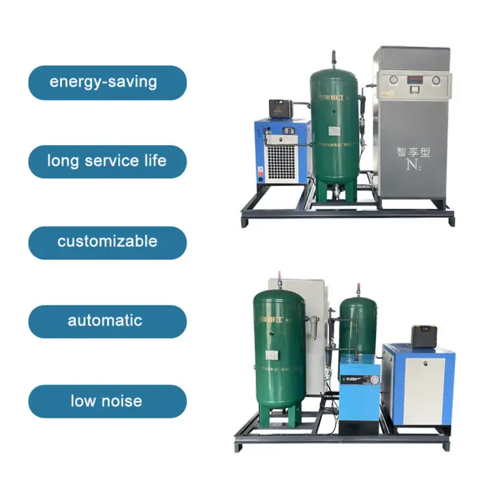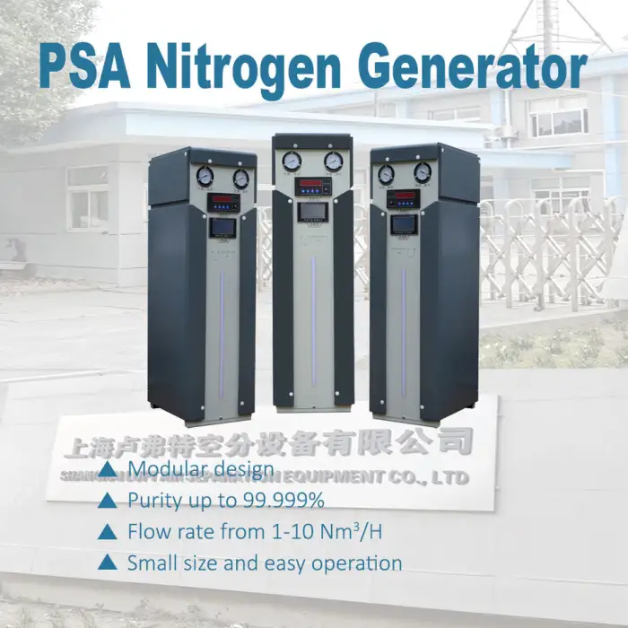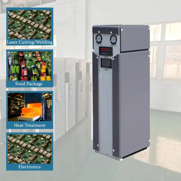 This generator can be used for various applications including industrial nitrogen production, food packaging and preservation, metal fabrication and welding, pharmaceutical manufacturing, and electronics manufacturing.